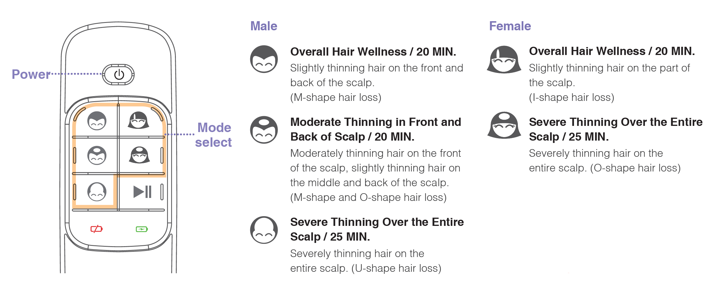 Choose your mode based off your Norwood Hamilton & Ludwig-Savin Classification. Then sit back or go about your day! It's that simple.